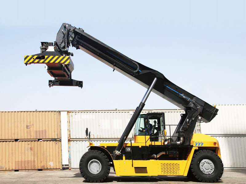 In smaller terminals and medium-sized ports, reach stackers serve as versatile vehicles for efficiently managing intermodal cargo containers. These machines excel at rapidly moving containers over limited distances and organizing them into rows, accommodating the container's accessibility requirements.